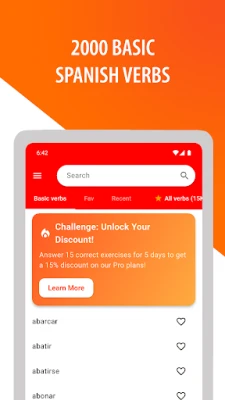 - Massive Verb Library: Search and study over 15,000 Spanish verbs with complete conjugation tables and translations.