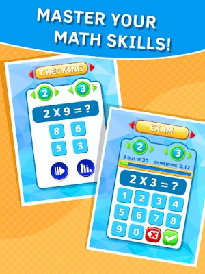 Exam. When you’re sure that you’ve learned times tables take an Exam to test your skills. Solve tasks before time runs out.