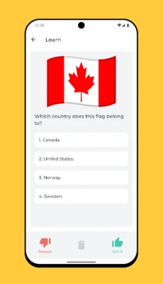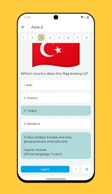 Tests – Help reinforce knowledge by matching the flag with the country name through multiple-choice questions.