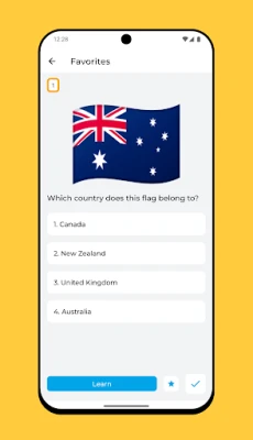 Favorites – Allows you to save difficult questions or countries you need to remember and review them later.