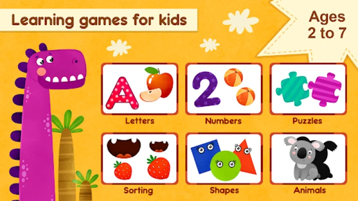 Educational games for kids and toddlers are designed for preschool boys and girls aged two through six. Fun and engaging tasks will help them learn letters, numbers, colors, and shapes. The learning games will foster the kid's logical thinking and focus. Children's games and coloring pages are available ad-free and offline.