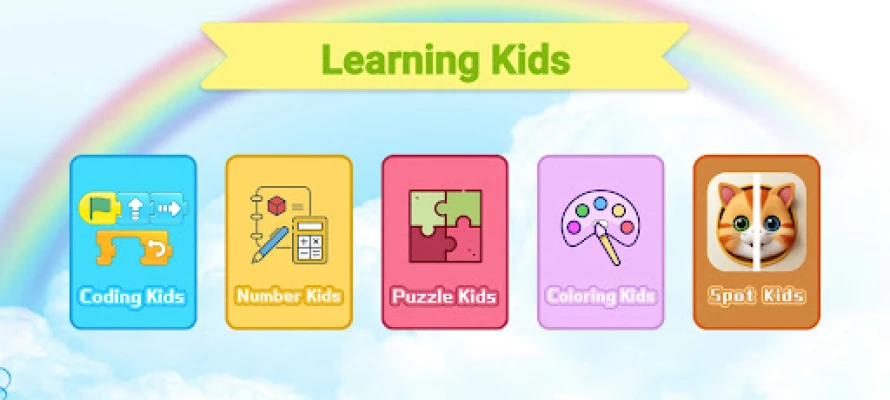 Features: • Code Kids - Organize kids thinking and express kids ideas. • Number Kids - Learn math and numbers. • Puzzle Kids - Develop kids memory, attention, logical thinking. • Color Kids - Filled with fun, colorful, and creative drawing and painting. • Spot Difference for Kids.