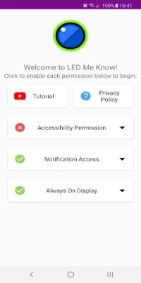By using LED Me Know, you acknowledge and consent to granting the Accessibility Permission.