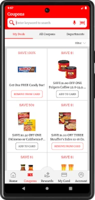 Register for a new account or log in, ‘Clip’ coupons for free items and extra savings, present your digital loyalty card to the cashier to scan at the register!