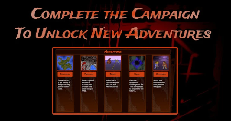 After completing the campaign in normal mode you will unlock Scenarios (available by clicking Next Page on the Adventure selection menu).