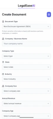 LegalEaseAI is your AI-powered assistant for producing professional legal documents that align with United States federal and state regulations. Create customized contracts in minutes by entering your industry, state, and company profile—then download ready-to-use files instantly.