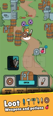 The auto-battle system with idle clicker gameplay lets you continuously earn more coins to improve your hero's attack, shield, potions, and experience gaining efficiency, making your adventure smoother. Fight an idle war in this free RPG and experience mobile gameplay at its finest.