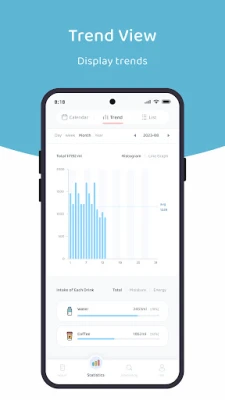 - Trend Statistics - Don’t worry about observing daily water drinking trends. We provide two presentation methods: calendar and trend chart to help you make the most effective water drinking plan and display your water drinking records.