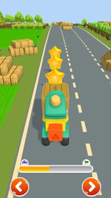 The player drives along the track, avoids obstacles and collects resources. Obstacles can be trees, stones, etc. Some of these obstacles can cover all three lanes - you need to drive onto the springboard for an automatic jump.