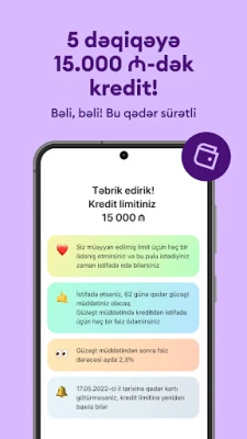 - İllik 15% faiz dərəcəsi ilə 59 ayadək 50.000 ₼-dək kredit