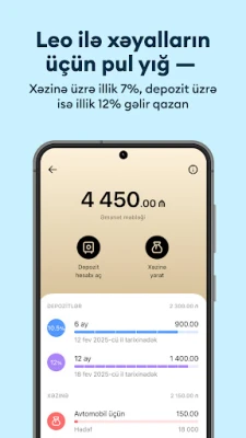 - Xəyallarınız üçün pul yığın və Leo Black kartı ilə illik 6% və ya Leo Prime kartı ilə illik 7% qazanın