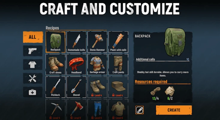 In the dawn of zombie apocalypse every survivor must have his own base with strong walls, craft ranged and melee weapons and armor to save from enemies, look for various survival items. Create a safe zone to be secure during dark days, cook food on fire, build shelters, barricades and fortifications and craft as many weapons as possible.