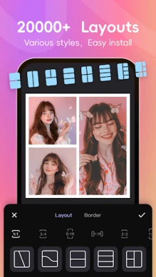 - Enjoy thousands of amazing effects, stickers, frames, backgrounds, grids, and layouts — completely free!