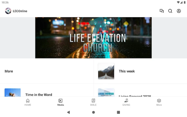 This app will help you stay connected to Life Elevation Church. With this app, you can tune in to live streams, watch or listen to past sermons, stay updated with push notifications, view our calendar, and register for upcoming events.