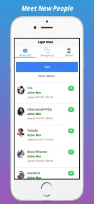 Light Chat is free mobile app for meet, chat, firt and fun with new people and make new friends online from all over the world! if you are looking for soulmate with strangers or want to fall in love, try Light Chat to find free online single who are just like you.