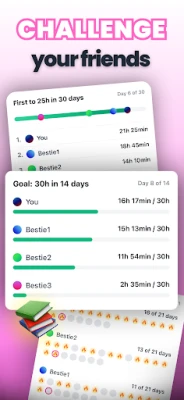 - Invite your friends to study challenges and see who can stay focused the longest.