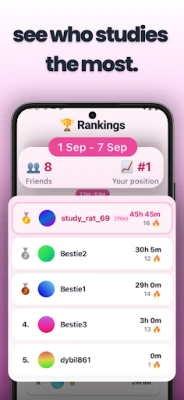 - Compare your study time with friends on live leaderboards.