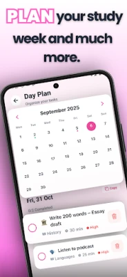 - Study timer with focus mode