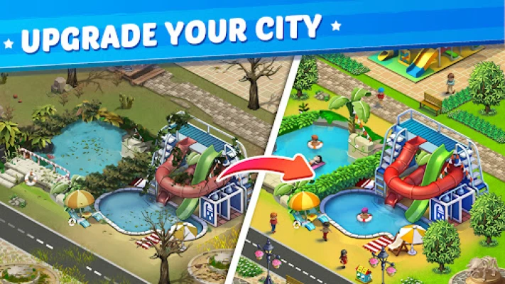 In Lily City, you can have many unique buildings, such as water park, magic aquarium, Roman castle, as well as police station, museum, fire station... Each building is not only novel and special, but also has its own role, and they are indispensable in the city. By rationally arranging these buildings, constructing and upgrading, your city will continue to evolve and eventually become an stunning metropolis, and your friends will cheer for you!