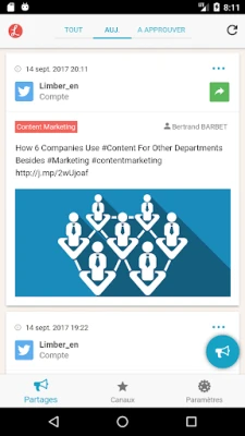 Limber permet également de gérer la diffusion de contenu via les comptes sociaux des personnels dans une logique d'Employee Advocacy" ou de Social Selling".