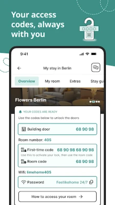 With Limehome, your personal access codes are always at your fingertips. Receive them on the day of your arrival, ensuring a smooth and secure entry to your accommodations.