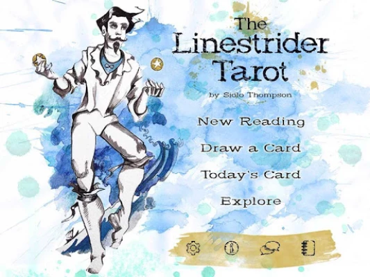 Author/artist Siolo Thompson’s minimalist images whisper gently, with careful intricacies and soft strokes of color. The Tarot archetypes in Linestrider are imaginatively wide-ranging, including animals as well as humans, all recognizably framed for people familiar with the RWS cards.