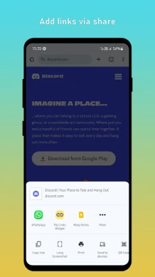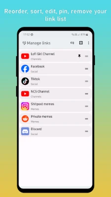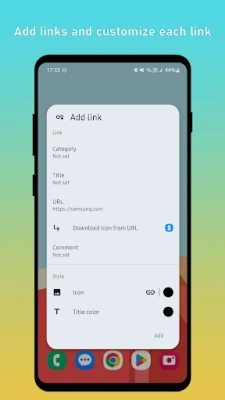 With this app you can save unlimited links to your home screen widget. You can reorder links, add categories, change colors, save custom icons (or directly download icon from URL link), add comments, copy, share, pin your favorite links, etc.