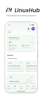 Whether you are just starting your Linux journey or already have experience and want to level up, LinuxHub helps you learn faster through step-by-step classes, command examples, quizzes, and hands-on practice.