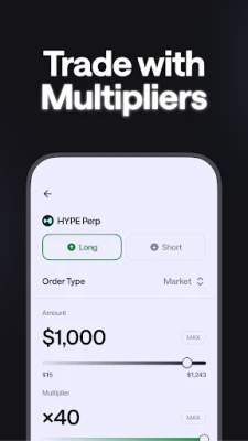 - Trade BTC, ETH, SOL, and more with multipliers, up to ×40