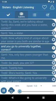 "English Listening & Speaking" is a free application for listening to speak English. In "English Listening & Speaking" all the articles are categorized and divided the level, which means that you can easily start your listening English practice from the level you’re comfortable in and work your way through the more advanced level articles and conversations. With preset scenarios that cover almost all the aspects of the daily lives, you will soon find the results of listening English practice effectively affecting your English listening and speaking skills.