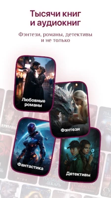 • Безлимитный доступ к аудиокнигам и книгам в десятках жанров: фэнтези, любовные романы, триллеры, детективы, фантастика и другие