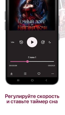 • Комфортный аудиоплеер: скорость, таймер сна, фоновый режим