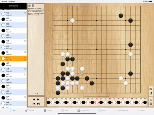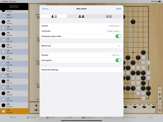 - Select from 5 pre-defined rulesets when you start a new game, or adjust game rules to your preference (komi, ko rule, area/territory scoring system, number of passes to end game, resume play by alternating/non-alternating play, four passes end game)
