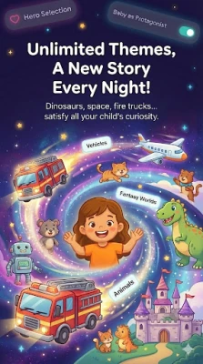 Create countless combinations across countries and cultures, magical worlds, space adventures, favorite toys, and cozy decorations—so each night can feel fresh, familiar, and made for your child’s imagination.