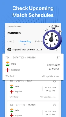 This app shows all the international and domestic cricket season like IPL 2026, T20 World Cup 2026, Asia cup, Cricket Men World Cup, Champions Trophy, Big Bash League, T20 Series and all other Cricketing Tours.