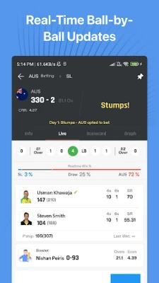 Live Cricket Score app contains Ball by Ball Live Score updates of all cricket matches, Fixtures, Teams details, Match Schedules and full coverage of the series, Player Details, Cricket News, Recent Match Results and many more.