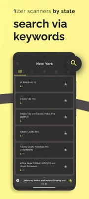 • Reach live police scanners, ems, fire radios. You can also see listener counts for each station.