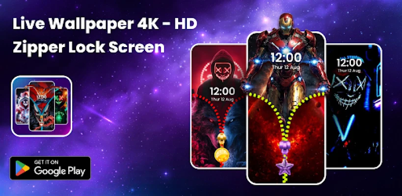 "Wallpaper HD 4K Zipper Lock – Stylish Lock Screen with Unique Themes