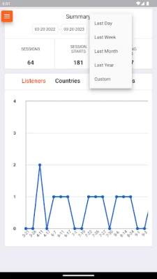 - Station overview: Get a snapshot of your station's performance, including total listeners, time spent listening, and storage status.