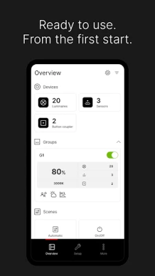 - Safe commissioning and operation of the lighting combined in one app.