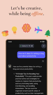Looking for a ChatGPT alternative that prioritizes your privacy? Meet Llamao, the offline AI assistant powered by open-source LLM models. Llamao is always there when you need it and doesnβt spy on you. Whether you're working, traveling, playing, or exploring, this assistant keeps your productivity flowingβno internet required!