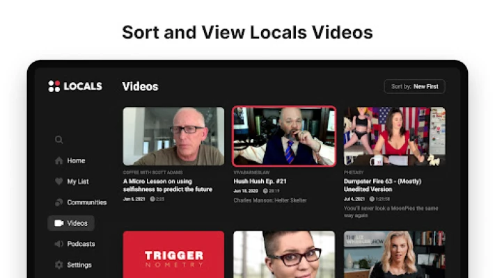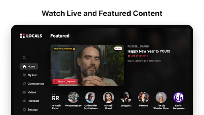 The LocalsTV app provides direct access to your favorite creator videos and podcasts. Watch and listen to content on the big screen and easily navigate between content and community video and podcast offerings. LocalsTV allows you to preview content before purchasing, as well as view free content across multiple communities and creators. Save your favorite content to view later in My List and use the Search functionality to find specific videos and podcasts. Please be aware that some content may be displayed in portrait mode if that matches the original source material.