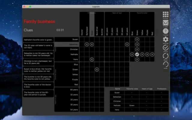Solve logic grid puzzles similar to Einstein's famous zebra puzzle "Who has the fish?" on your iPad, iPhone, Apple TV and Mac!