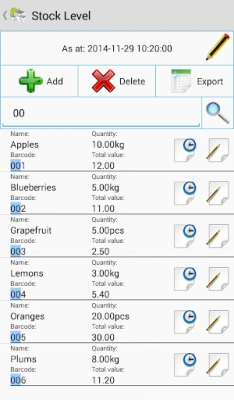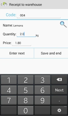 - adding items to documents by scanning codes or browsing the item list