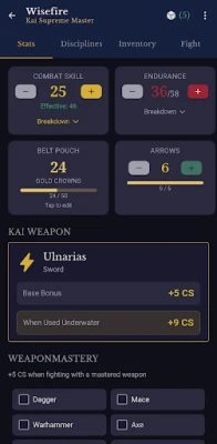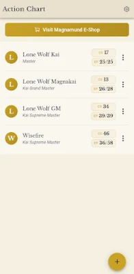 Track your character's journey through the Lone Wolf gamebook series with this digital action chart. Supports all books - both Lone Wolf and New Order series.