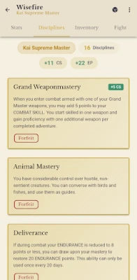 • Full discipline system for all eras (Kai, Magnakai, Grand Master, and New Order)
