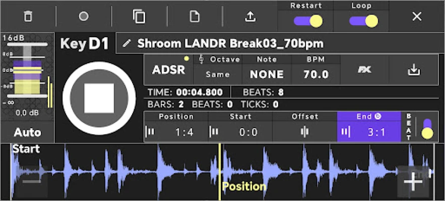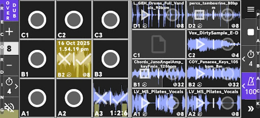Import, record, overdub, edit, and loop audio on responsive sampler pads.
