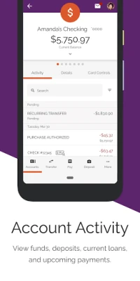 Accounts - View and manage all of your cash accounts. Review recent transactions, see current balances, make transfers, pay loans, and search for specific payments or deposits.