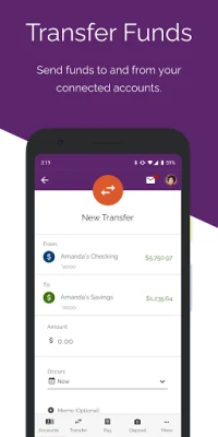 Fund Transfers - Send funds to and from your connected accounts at other financial institutions through our funds transfer capability.