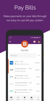 Bill Pay - Schedule or manually make payments on your bills through our easy-to-use bill pay system.
